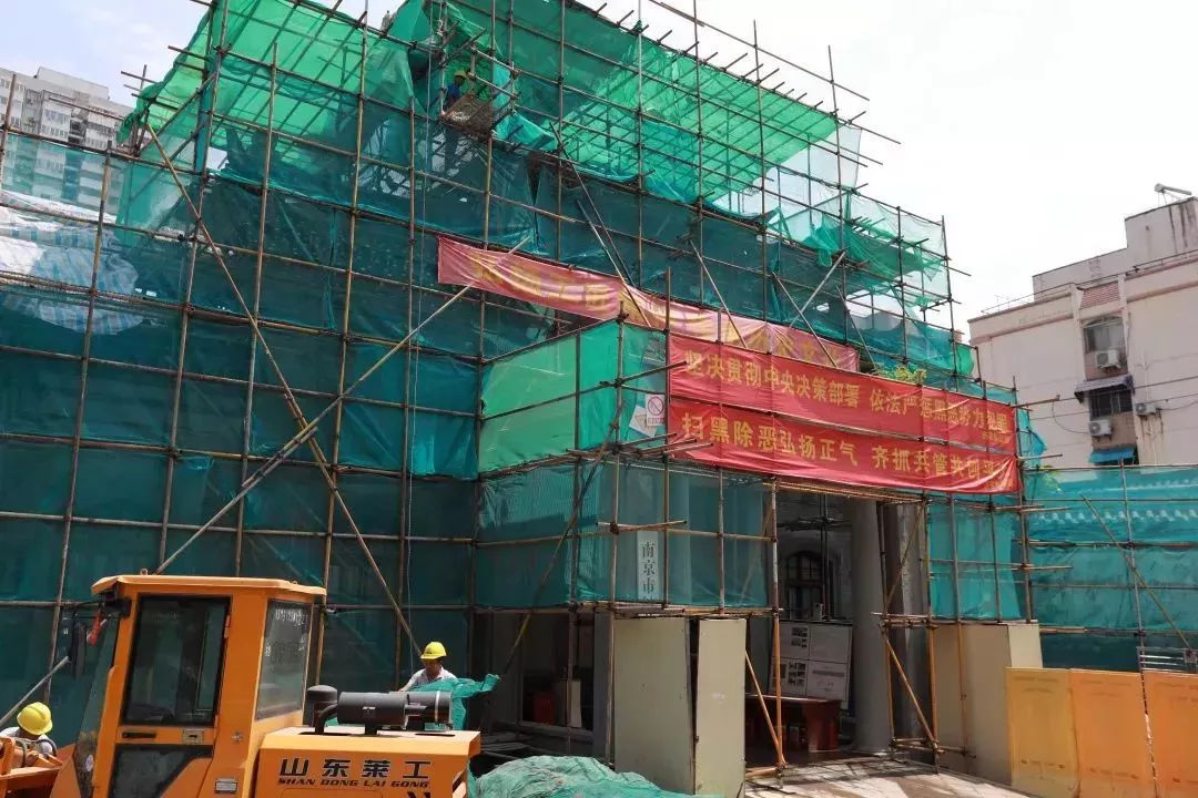 密密麻麻的腳手架和安全網(wǎng)將曾公祠牌樓層層包裹,此時的牌樓卻透露出一股伺機(jī)而動的生命力,躍躍欲試、蓬勃待發(fā)。