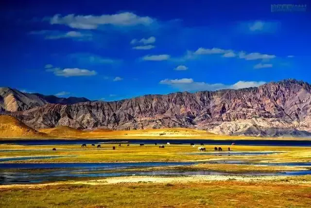 位于日土縣城西部,只允許飼養(yǎng)馬匹,因此瑪嘎?tīng)柌輬?chǎng)成為馬兒繁衍生息的天堂。豐茂的草場(chǎng)、蔚藍(lán)的天空、清澈的湖水、雄偉的山峰、奔馳的駿馬,在班公湖湖水的照耀下成為攝影愛(ài)好者眼中一道靚麗的風(fēng)景線。
