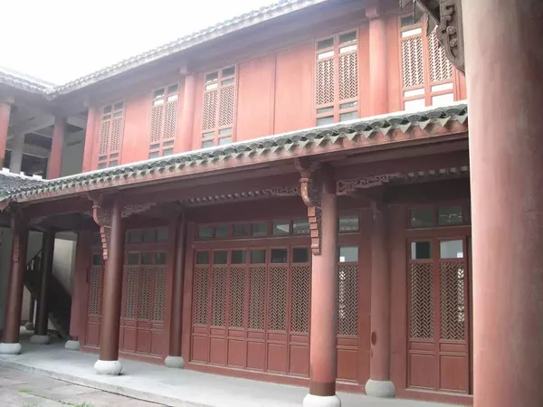 和德坊為二層木結(jié)構(gòu),局部三層,正層平面為江南民居傳統(tǒng)的三合院型,后屋為大半方屋頂,磚混洋式建筑,屋頂為紅色洋瓦,東西外墻有西方式的壁爐煙囪,正屋門窗木雕精美,保存較完好。