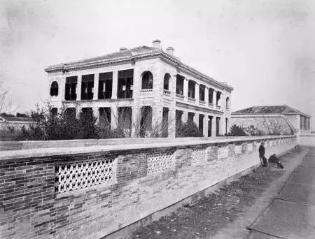位于白沙路56號,典型英國殖民地式建筑,是鴉片戰(zhàn)爭后五口通商的見證,建于1842年,占地面積487.5平方米,建筑面積975平方米。主樓坐西朝東,面向甬江,平面略呈長方形,通面闊24米,通進深19米。正立面八根粗大混凝土方形柱貫穿兩層,屋頂為洋瓦四坡頂,上有4支方形壁爐煙囪。室內(nèi)西式裝飾,有壁爐,拼貼木地板。