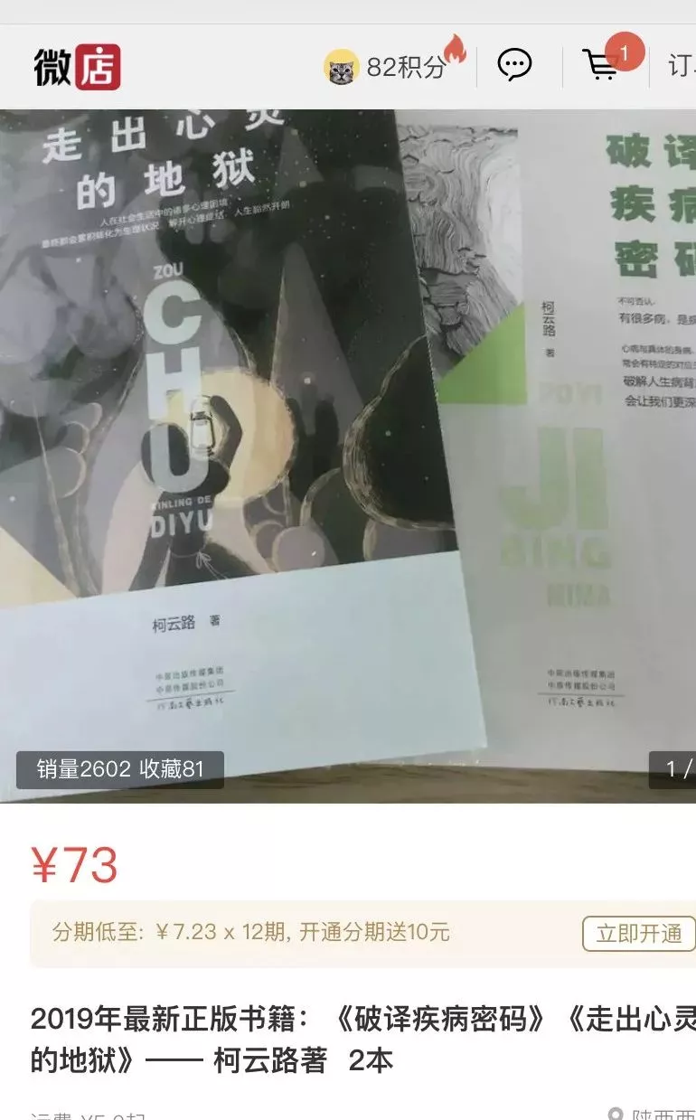 此次直播觀看次數(shù)為6592,而《破譯疾病的密碼》《走出心靈的地獄》兩本書售價73元。
