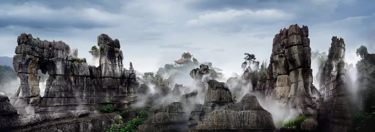 萬盛石林國家地質公園”,典型的碳酸鹽巖喀斯特地貌,以地表石林、地下溶洞等景觀為主。巖石中大量的古生物化石,形成于距今4.70~4.58億年的古生代奧陶紀中期,是中國至今發(fā)現的發(fā)育于最古老基巖上的石林景觀,被譽為“中國最古老石林”“石林之祖”。