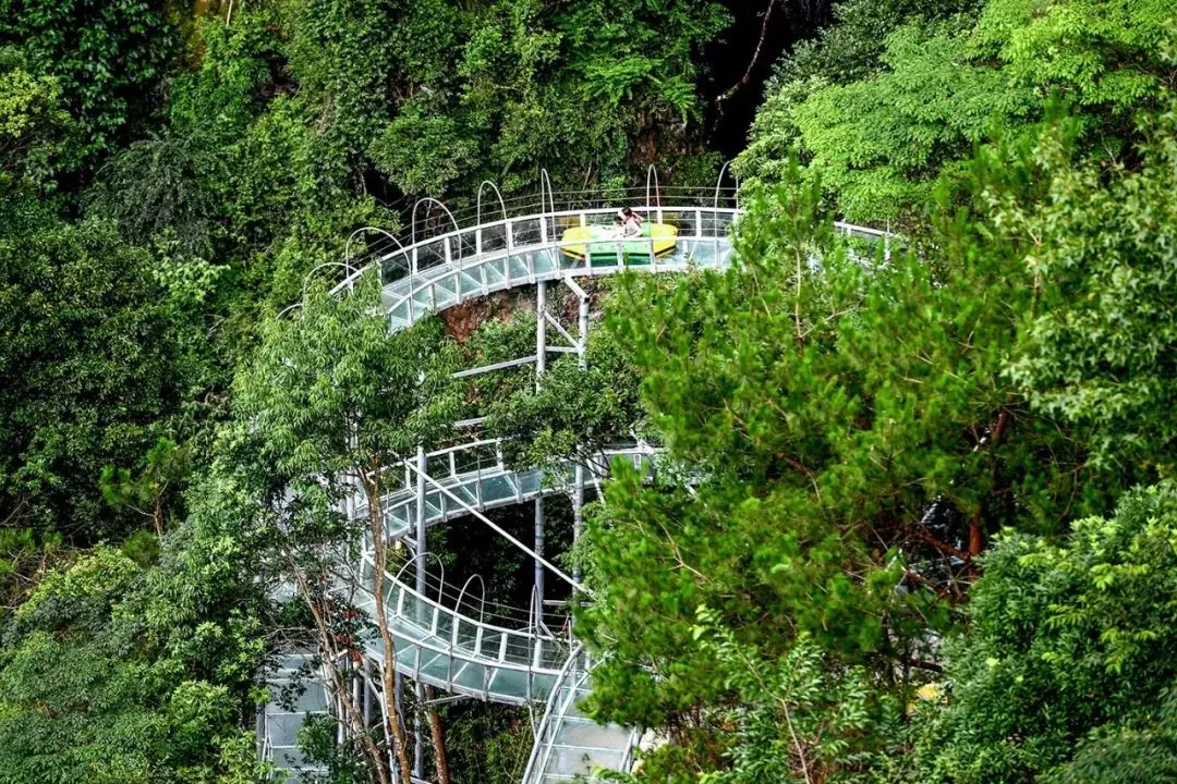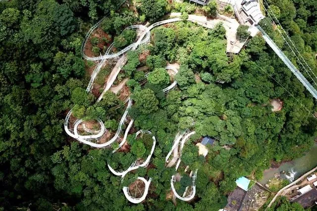 這里全長約1680米,落差達到近200米,足足有60層摩天大樓高,從山頂出發(fā)瞬時繞過山林飛馳而下,媽呀,刺激!