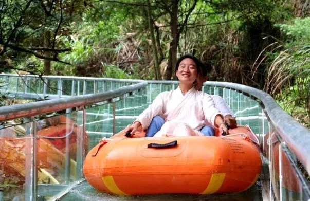 根據(jù)工作人員的介紹,天空漂流作為俠天下旅游區(qū)夏日新推游玩項目,也是福建首個“高空玻璃水滑道漂流”,被稱為“華南第一漂”!