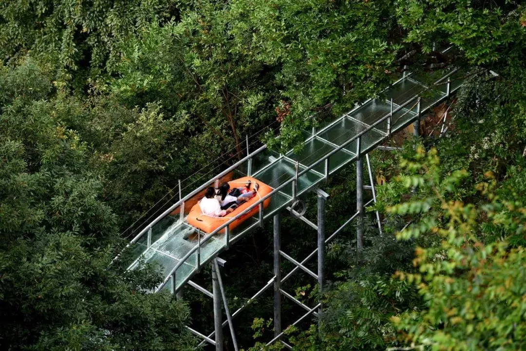 瑞云山有著玩轉(zhuǎn)刺激的水滑道,全長一公里多,純玻璃設(shè)計,含多處蛇形彎,驚險刺激,一路而下,涼風徐徐、水浪翻涌,那感覺是真的爽~