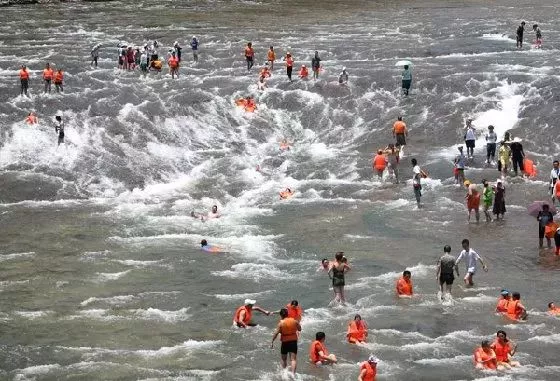 那么,不得不提的就是白水洋里的百米沖浪滑道, 在近百米,寬60多米的天然沖浪滑道里耍個刺激,光是坐在水中,就不要太爽~