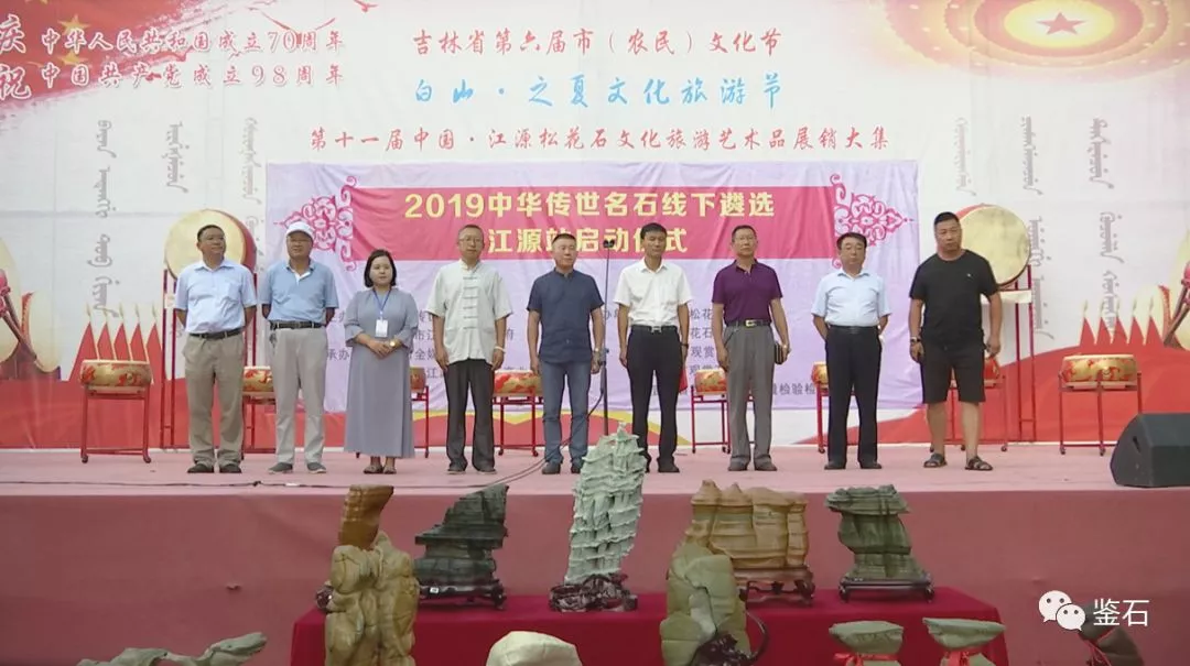 8月6日下午,2019中華傳世名石線下遴選江源站盛大啟幕。鑒石全媒體主編、中華傳世名石組委會(huì)主任、中國(guó)觀賞石一級(jí)鑒評(píng)師李曉坤,吉林江源區(qū)松花石產(chǎn)業(yè)服務(wù)中心主任、吉林省高級(jí)專家、中國(guó)觀賞石鑒評(píng)師邵長(zhǎng)友,江源區(qū)電視臺(tái)臺(tái)長(zhǎng)曹景福,吉林省長(zhǎng)白山松花石研究會(huì)會(huì)長(zhǎng)劉洪聲,遼寧省觀賞石協(xié)會(huì)副會(huì)長(zhǎng)張慶賀,吉林省松花石產(chǎn)品質(zhì)量檢驗(yàn)檢測(cè)中心主任沈榮利,吉林省松花石產(chǎn)品質(zhì)量監(jiān)督檢驗(yàn)中心檢驗(yàn)室主任,吉林省長(zhǎng)白山松花石研究