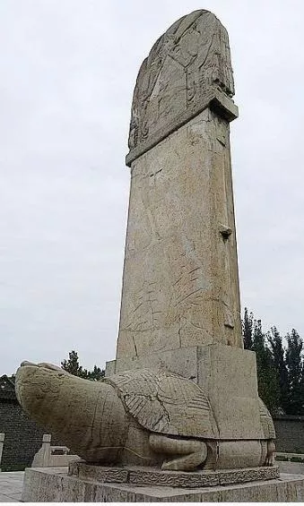 剩下兩個(gè)巨碑,一個(gè)是無字碑,俗稱“萬人愁”,通高16.95米,為中國石碑之最。如此巨碑,可以想見當(dāng)年是如何費(fèi)力地將其從采石地運(yùn)抵此處。另一個(gè)為“慶壽”碑,通高16.4米,上刻“慶壽”兩字,字高1米多,為元代燕山老人補(bǔ)刻。