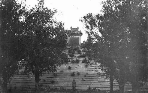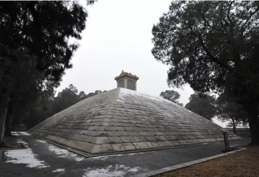 壽丘由2662塊磨光料石堆砌而成,呈覆斗狀,俗稱“萬石山”,也有“中國金字塔”之稱。臺頂建有石室,高2.6米,清乾隆年間改為廡殿頂,內(nèi)供漢白玉雕刻神像一尊。