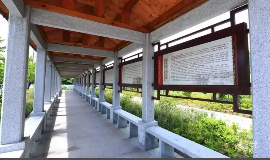 長(zhǎng)廊里面分別掛著余姚名人的光輝事跡;中央草叢中“金榜題名”的牌坊莊嚴(yán)精美,牌坊上的雕刻清晰的刻畫著那個(gè)時(shí)代的歷史,不禁讓人感嘆時(shí)光荏苒,歷史已過去千年,雖然村中新樓拔地而起,卻只有那小橋流水仿佛依然流淌著那悠悠的文化古韻。