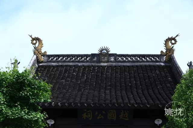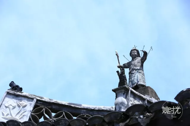 越國(guó)公廟的屋脊上,我們還看到了一對(duì)形象鮮明造型生動(dòng)的塑像,他們是誰(shuí)?站立在屋脊的角上,是為了守護(hù)廟宇還是有其他意義?我們仰視天空的時(shí)候,能夠看到他們同樣目視遠(yuǎn)方……,或許他們?nèi)栽跓o(wú)言的述說著一些故事,只是我們的耳朵只能聽到有聲的言語(yǔ),不能領(lǐng)會(huì)他們的心意罷了。