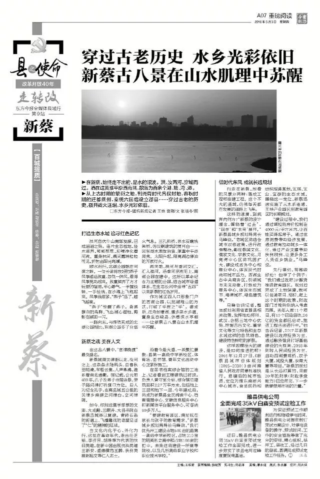 馬峰告訴記者,整體規(guī)劃利用省直管縣相關(guān)政策,發(fā)揮地處鄭州、武漢、合肥三地中心優(yōu)勢(shì),挖掘古呂文化、黌學(xué)文化等文化特色和生態(tài)水城這樣的自然特色,建設(shè)特色鮮明的新蔡。