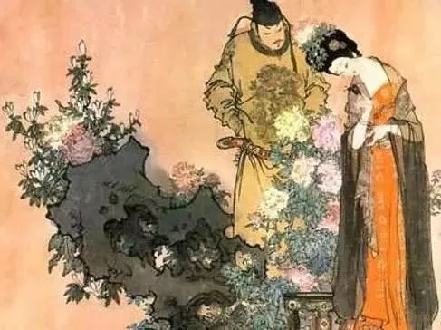 楊貴妃深得唐玄宗的寵愛,稱得上國色天香,她的雙眸也情意綿綿。梨園的李龜年在一旁演奏著霓裳羽衣曲,唐玄宗最為得意,因?yàn)檫@是他的藝術(shù)杰作。