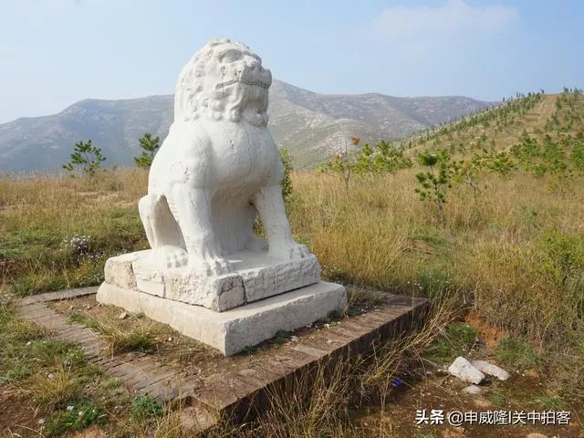 2019年10月12日,我和朋友來到泰陵,游覽完北門遺址后,再一次翻越尖山,順著臥虎山而下,第一次到達(dá)泰陵的東門遺址。2001年6月25日,泰陵與陜西境內(nèi)的多座唐陵一起被國務(wù)院公布為第五批全國重點(diǎn)文物保護(hù)單位。作為唐泰陵的重要遺址,東門遺址是“國?!眴挝坏慕M成部分,這里南側(cè)的石獅旁邊豎立著一塊“國?!眴挝槐?。