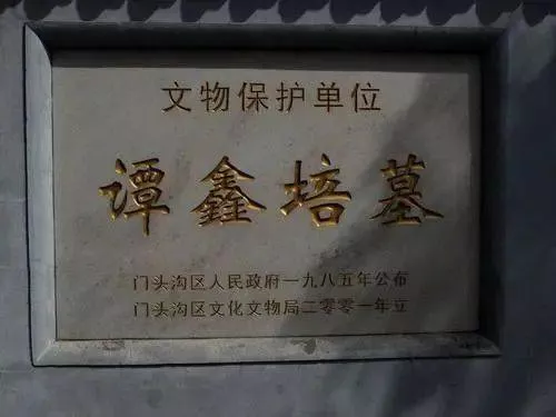 2005年,為了緬懷譚鑫培大師的千秋功業(yè),北京市委市政府撥??睿墒形奈锞趾烷T頭溝區(qū)文化委員會在原墓址對譚鑫培的陵墓進行了精心修葺。修葺后的陵墓占地約500平方米,四周建有圍墻,穿過寫著“國劇宗師”四個大字的石門,就可以瞻仰到高臺上聳立的墓碑和墳冢。墓碑的背面是譚鑫培的生平事跡,由戲曲界的名人劉曾復、和寶堂撰文,93歲的王琴生手書。墓園的正門楹聯(lián)是梁啟超的兩句詩:“四海一人譚鑫培,聲名廿載轟如雷。