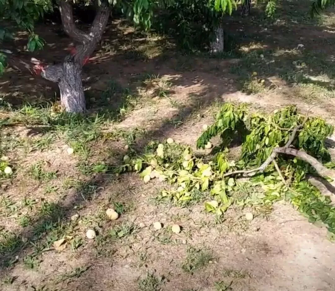 折斷的樹枝、掉落滿地的綠桃子等“滿目瘡痍”的景象實在是不堪入目。