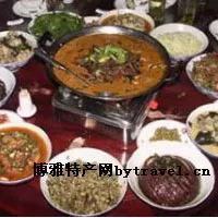 這桌農(nóng)村回民筵席,主要用羊肉、牛肉、羊肚、土豆、蘋果、豆腐、糯米、雞蛋,配以菠菜、黃花、木耳、桃仁、圓肉、葡萄干、青梅、紅棗、蕨麻、蜂蜜、白糖及各色調(diào)味品制成。雖是大眾菜肴,但各有各的味道。燴九子:丸子酥爛,湯濃味香;燴夾板;夾板軟韌可口,外酥里嫩;燴肚絲:肚絲筋軟,香辣適口。燴羊肉:湯鮮、肉爛;燴假蓮子:用土豆炸成的假蓮子,色黃軟嫩,滑潤香甜;燴蘋果;白湯,金黃的蘋果,散見的青紅絲,軟爛甜香;燴狗牙豆腐:軟嫩,湯濃,味鮮,別有滋味;紅燉牛肉:肉爛,色紅亮,味醇香;燴酥肉;酥脆鮮香;最后一道釀飯,是軟糯甜香,果味鮮。吃了農(nóng)村回民十大碗,你也就領(lǐng)略到寧夏農(nóng)村回民的飲食特點(diǎn)。
