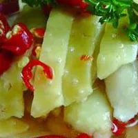 吳忠白水雞 寧夏 ? 吳忠 ? 同心 用老湯(即經(jīng)常煮白水雞的湯)加清水,還有調(diào)料包,把母雞放入鍋內(nèi),先用旺火燒開,再用文火慢燉。待雞肉煮熟(以能用筷子扎進(jìn)雞肉為宜),撈出晾涼,再取雞油抹遍全身,使雞皮發(fā)亮。吃時(shí)將熟雞帶骨剁成5厘米方塊,碼在盤里,配上三花油一小碟上桌。看上去色澤黃亮,聞起來(lái)清香撲鼻,吃起來(lái)味道醇厚,鮮嫩爽口。此菜尤以吳忠一帶選料考究,制作精細(xì),頗享盛名,故名“吳忠白水雞”。( 銀川) 贊 (0) 39 151 生成海報(bào) 油香 下一篇 0001-01-01 銀川羊羔肉 上一篇 0001-01-01 相關(guān)推薦