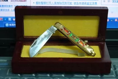 沙雅小刀在包裝和宣傳下,開始拋頭露面。沙雅小刀是維吾爾族的手工藝制品,具有濃厚的維吾爾族數(shù)百年的風情。其柄以紅黃白等多色銅,銀為基料,鑲嵌鹿角、牛骨、貝殼、寶石及五彩石料,拼制成絢麗多彩的精美圖案。經(jīng)細心打磨、光滑細潤,灼灼生輝,霞光如射。由于全都制造程序皆用手工,新產小刀似各異,皆不雷同。一把好的小刀剃須修胡,剔肉刮骨,游刃自如,為日常生活之必備工具,又是美化生活的工藝珍品,常傳承數(shù)代,成為傳世家寶。沙雅小刀又稱“塔石罕寶石刀”有小如榆葉者,小巧玲瓏,光彩剔透、精美別致,趣味無窮。大者如羊角,莊嚴肅穆,冷氣逼人、威嚴殺氣,睹者照寒。但最多的就是如桃葉、似柳絮,長約4—6公分的,它集民間實用與庭室擺設及收藏為一體,流行最廣,暢銷不衰。目前已注冊商標的沙雅小刀有“一桿旗牌”沙雅小刀。