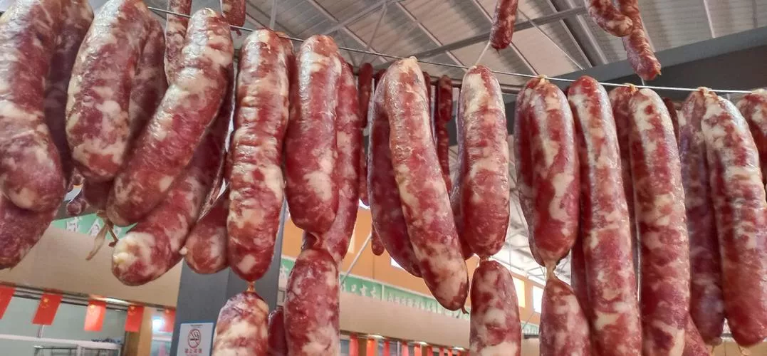 香腸 河北 ? 廊坊 ? 三河 系以新鮮豬大腿肉、肋肉、臀部肉、腰肉為主料,大多為瘦肉;腸衣為漂洗潔凈無(wú)暇的豬腸衣;輔料有石落子、砂仁、香精、精鹽、砂糖、純高梁酒及陳年醬油等。先將肉料洗凈去血,切成肉丁,加以各種佐料及調(diào)料,攪拌均勻,放置3小時(shí)左右,待料味入肉后再灌腸。每灌14厘米左右用麻繩結(jié)扎,邊灌邊扎,直至整條腸衣灌滿,然后經(jīng)恒溫烘干而制成。 特點(diǎn):成品色澤純正,腸條飽滿,粗細(xì)均勻,肥瘦適宜,香味醇厚,甜咸兼具,軟滑利口,食之不膩,且耐久存。 贊 (0) 39 151 生成海報(bào) 柿干 下一篇 0001-01-01 大黑坨黃瓜 上一篇 0001-01-01 相關(guān)推薦