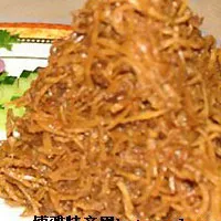 塞北古城平泉,有一種傳統(tǒng)風(fēng)味小吃——改刀肉。改刀肉以豬肉和竹筍為主料,切成絲翻炒,邊炒邊加入雞鴨湯、口蘑湯、醬油、紹興酒、香油等。待肉、筍成為金黃色后,澆上汁水,盛入盤中,成品改刀肉,外形猶如一座金字塔,筍絲柔韌,肉絲筋硬,味道鮮美,爽口而不膩人。