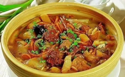 臨縣大燴菜 山西 ? 呂梁 ? 臨縣 大燴菜:分葷、素兩種,素燴菜以大白菜、南瓜、西葫蘆、豆角、土豆、胡蘿卜、豆腐、粉條等為原料,肉燴菜加羊肉或豬肉。做法是先將鍋加熱,倒入少許油,放入鹽、大蔥、大蒜、香菜、大料(豬肉燴菜)、花椒(羊肉燴菜)等佐料,再將上述原料翻炒后加水燉熟為止。大雜燴是當?shù)乩习傩兆顬槠毡榈囊环N吃法,味道非常可口,當?shù)厝擞眠@樣的話形容其好吃:香塌腦瓜蓋哩! 贊 (0) 39 151 生成海報 辣油碗脫 下一篇 0001-01-01 三交火燒 上一篇 0001-01-01 相關推薦