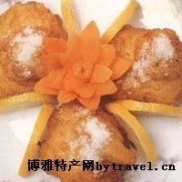 特產制作:將飴糖、油、蘇打和水放入盆中攪勻,再加入面粉和成軟硬合適的面團,將面團摘劑,搓成直徑為二厘米的圓條,用刀切成二厘米長的小塊,放入干面中滾成小球生坯,將砂糖、飴糖、桂花熬制成漿料,將小球生坯篩去干面,放入炸油中炸熟后撈出,瀝凈油后掛漿,粘上砂糖即為成品。