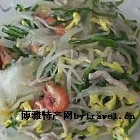 做“和菜”的材料很普通:粉皮(有一種淡綠色的)、蛋皮、韭菜、瘦肉絲、綠豆芽,一般是五樣。是不是代表端午(五),還是象征“五毒”,留待考據(jù)家考證。且說這五種菜并非和起來一炒就成了和菜。除了蛋皮要預(yù)先攤好外,其余各樣也要分別對待,一樣一樣下鍋炒熟。而且火候要掌握好,肉絲要炒得嫩,綠豆芽不能炒癟。最后和起來一炒就成了。如果圖省事,各樣材料大呼隆下鍋炒,那準(zhǔn)不好吃。所以,就這點看,做起來也頗費手腳的?!昂筒恕笨烧f是什錦菜,葷素搭配,吃起來爽口,營養(yǎng)也豐富。發(fā)明這樣菜的人是懂得營養(yǎng)學(xué)的。