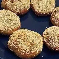 原料配方(制100只) 上白面粉2:35單位重量 去皮白芝麻200單位重量 酵種225單位重量 精鹽60單位重量 香蔥1單位重量 食堿12:5單位重量 油渣400單位重量 花生油850單位重量 去皮黑芝麻200單位重量 熟豬油250單位重量