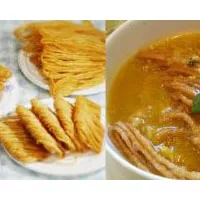 在淮安,茶馓屬婦孺皆知的美食。淮安茶馓創(chuàng)于清朝后期,距今有一百多年的歷史,因?yàn)楫?dāng)時(shí)茶馓做得最好的人姓岳,故又名“岳家茶馓”,又因?yàn)樵朗系募艺拷窗渤枪臉?,所以也有人稱其為“鼓樓茶馓”。 茶馓既可干吃,也可用水泡著吃。干吃時(shí)大多作佐酒小點(diǎn),而用水泡著吃時(shí),只需用開(kāi)水沖泡數(shù)分鐘,待其全部泡開(kāi)以后,便可食用。茶馓泡來(lái)吃,柔韌香軟,易消化,尤其適合產(chǎn)婦和體弱多病者食用。