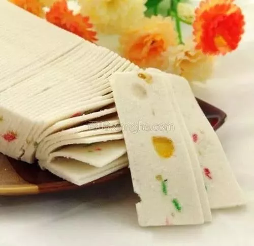 灌云大糕,又名“玉帶糕”,民間通稱“桂片糕”,是節(jié)慶假日和饋贈(zèng)親友必不可少上等食品,而“玉帶糕”的名稱,歷史悠久,美譽(yù)流長(zhǎng),其中還有一段鮮為人知的典故。 清朝康熙年間,河道大總督、左殿張丞相,在康熙六十年(1721年)治理河道時(shí),曾駐蹕大伊山古佛寺,他感到寺內(nèi)素餐單調(diào)乏味,便問(wèn)主持僧人,大伊山有何名貴食品,老和尚即捧出本地特產(chǎn)的桂片糕。那形狀似本朝一品官飾玉腰帶,潔白如雪,清香四溢,蟬翼般的薄片,放進(jìn)口中,勿需細(xì)品,窮滋甘甜,已入五臟六腑。張總督不禁拍手叫絕,這種奇繕玉食,初識(shí)恨晚。于是提筆在粉墻上,題五言絕句一道“玉帶飄天下,千家萬(wàn)戶迎。奇膳炙人口,果不負(fù)虛名”?;鼐r(shí),他特將桂片糕改名為玉帶糕,進(jìn)貢圣祖皇帝玄燁品嘗,引得“龍顏”大喜,變成貢品。 1990年,灌云大糕榮獲首屆中國(guó)食品博覽會(huì)銀牌獎(jiǎng),為省優(yōu)、部?jī)?yōu)產(chǎn)品。