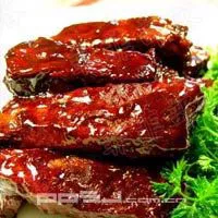 無錫“肉骨頭”的歷史有100多年。無錫肉骨頭其實根本不是“骨頭”,而是挑選近肋骨處的精肉連同肋骨一起燒成。作料有茴香、醬油、陳酒,燒煮時必須用面粉將鍋沿封住,用文火燒,燒至噴香酥爛,出鍋前用冰糖收膏。其肉汁甜香成糊狀,俗稱“老汁”。出售肉骨頭時,將老汁澆在熟肉上,使汁與肉拌和。無錫肉骨頭色、香、味俱佳,看來醬紅色,聞時濃香撲鼻,吃進口油而不膩、爛而不糊、甜咸適中