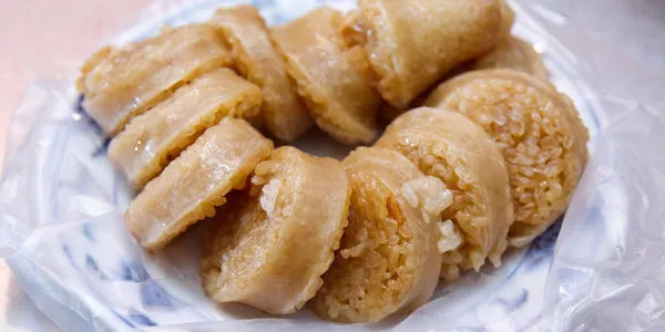 產(chǎn)地:中國江蘇南京。 工藝:制作素豬腸要選用新鮮、色黃、拉力大、綿軟的薄百頁(千張)為原料。在5%濃度攝氏40度左右的堿溶液中浸泡3分鐘,當手摸百頁有滑膩感時,把百頁撈出,平放在案板上,拿一根竹筷,用兩張百頁纏筷推滾成卷,再用方白布對角包裹,卷堅實,再把兩頭布角順筷纏繞,用力向中間對擠成皺,兩頭布角向內(nèi)塞緊。這樣包布皺型固定,煮時不會散花;否則,布卷不緊,百頁粘連不好,素豬腸泡囊言易散,腸不起皺,腸兩頭分開。百頁卷好后定型水煮,約半小時后撈出浸泡冷卻后抽筷拆布即成。如將煮好的大腸斜切半寸長,配料可制成五香大腸、醬大腸、鹵汁大腸等小菜。還可燒燴成葷、素的“全家?!薄3云饋硐烫疬m中,柔韌可口。特點:質(zhì)地細嫩,柔韌,色白爽口,形象逼真,滋味香美。( 南京)