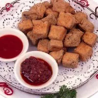 南京的臭豆腐可分為兩種,一種是灰白的嫩豆腐,一種是瓦灰的豆腐干。嫩臭豆腐下到油鍋里炸至金黃色,就可以起鍋,吃的時(shí)候澆上一些辣椒醬、芝麻醬、蒜汁、香菜、小蔥、姜末,吃起來(lái)外脆內(nèi)酥軟,味道香濃;灰色的臭豆腐干子,在油里炸的時(shí)間需稍久一些,才能炸得透,隨著誘人的臭味彌漫開來(lái),豆腐干的表面就會(huì)起小泡泡,待色轉(zhuǎn)變成灰黑色,就可以吃了。這樣的臭豆腐干子一般切成小塊,串在竹簽上,炸熟后直接刷上攤主備下的調(diào)味醬,趁熱食之,香脆可口,頗有嚼頭。 南京高淳的臭豆腐在做法上也有些與眾不同。先用上好的黃豆制成水豆腐,然后把白嫩的水豆腐壓制成白白的豆腐干子;再把豆腐干加入到一種鹵液中。此處的鹵液是最有講究的,需要用隔年留下的爛咸菜汁做成,純綠色、純天然,沒(méi)有添加任何色素,散發(fā)出來(lái)的是很自然的臭味。把盛放的壇子封好口,再埋到地底下,數(shù)天之后取出,白豆腐已成青墨色的臭豆腐干了。掰開豆腐干,可以看到從里面到外面,都是青墨色,聞聞奇臭,炸熟后入口卻又是奇香無(wú)比。這種地道的臭豆腐,近年來(lái)已經(jīng)快在市場(chǎng)上絕跡,出售的多是些仿制的贗品。