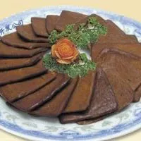 界首鎮(zhèn)位于高郵正北,為本市古鎮(zhèn)之一。因該鎮(zhèn)位于高郵與寶應(yīng)兩縣交界之處,是兩地的分界之首,故稱界首。到界首不可不品嘗“陳西樓”五香茶干?!瓣愇鳂恰蔽逑悴韪沙时鈭A形,色澤醬紅,內(nèi)部微黃,質(zhì)地細(xì)嫩,久嚼有味,清香可口。相傳乾隆皇帝下江南,路經(jīng)界首,聞岸上香味撲鼻,叫差役查詢,原來(lái)是煮五香茶干的香味。乾隆帝品嘗后大為贊賞。從此,界首茶干便列為貢品,名揚(yáng)四方。