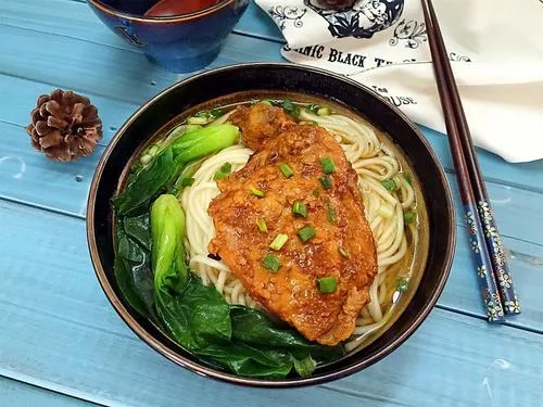 大排 包心菜 拉面 高湯 調(diào)料: 料酒 2勺 生抽 2勺 老抽 3勺 白糖 2勺 米醋 4勺 蠔油 2勺 生粉 姜蒜辣粉 神奇牌肉類調(diào)料粉 油 蒜末 桂皮 八角