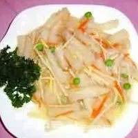 細(xì)露蹄筋 江蘇 ? 蘇州 ? 姑蘇 細(xì)露蹄筋是宴席中一道必備的中高檔炒菜。蹄筋有鮮、干兩種,鮮蹄筋用清水浸泡即可使用,干蹄筋需經(jīng)過(guò)水發(fā)、油發(fā)、鹽發(fā)三種方法泡發(fā)才能使用。 細(xì)露蹄筋以水發(fā)蹄筋為佳。先將雞脯丁、火腿丁、香茹丁、熟筍丁、青豆丁等輔料在炒鍋中用熟豬油炒一下,然后加紹酒、精鹽、高湯及蹄筋再炒,燒沸后移小火燒,最后轉(zhuǎn)旺火勾芡,淋麻油起鍋裝盤。 細(xì)露蹄筋色彩鮮明,芡汁似露,蹄筋軟韌而爽口,不爛不硬,熱吃鮮美無(wú)比。 贊 (0) 39 151 生成海報(bào) 響油鱔糊 下一篇 0001-01-01 碧螺蝦仁 上一篇 0001-01-01 相關(guān)推薦