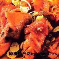 材料:煮熟雞一只、八角2粒、花椒1大匙、甘菜2片、蔥2支。