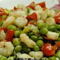 原料:河蝦375克,青豆75克,雞蛋清40克,鹽3克,味精2克,料酒2克,植物油30克,芡粉5克,香油1克。