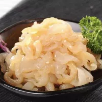 嵊泗是浙江沿海漁區(qū)海蜇的主要產(chǎn)區(qū)和出口基地。海蜇又名海咤,屬根口水母科。海蜇皮是海蜇的制成品,由鮮海蜇加工成海味品的有海蜇皮和海蜇頭兩種。它們的烹飪與食法:先將其從存放的甏內(nèi)取出,用淘米水浸半天,浸淡洗凈后,切成細(xì)條狀,用蒜泥拌醬油和醋蘸食,也可與綠豆芽或金針茹等進(jìn)熱油鍋稍加炒拌,然后佐以姜末、醋等。蜇皮、蜇頭味咸,性寒,不僅味佳清口,而且能清熱解毒,能治小兒風(fēng)疾丹毒與燒傷等。