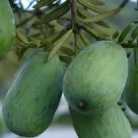香榧為常綠喬木,屬紫杉科榧屬,是世界稀有干果之一。香榧在我國(guó) 為原產(chǎn),浙江是原產(chǎn)地之一,會(huì)稽山區(qū)山高嶺峻,云霧繚繞,溫濕涼爽, 適宜香榧樹生長(zhǎng),是浙江香榧的主產(chǎn)區(qū),已有1300多年的栽培歷史。榧 樹雌雄異株,有性繁殖全周期需29個(gè)月,一代果實(shí)從花芽原基形成到果 實(shí)形態(tài)成熟,需經(jīng)歷三個(gè)年頭,每年的5至9月,同時(shí)有兩代果實(shí)在樹上 生長(zhǎng)發(fā)育,還有新一代果實(shí)的花芽原基在分化發(fā)育,人們稱之為“三代 同樹”。香榧樹壽命長(zhǎng)達(dá)四、五百年,有“壽星樹”之稱。