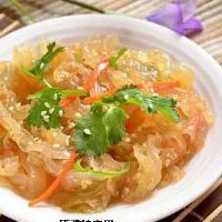產(chǎn)品名稱:海蜇 產(chǎn)品別名:海紅、水母 產(chǎn)品產(chǎn)地:寧波 產(chǎn)品特性:鮮香脆嫩、營養(yǎng)豐富 產(chǎn)品簡介:海蜇,原名海紅,又名水母,系屬腔腸動物,全身呈膠質(zhì)透明而粘滑,大的直徑約有1公尺,上部形如覆蓋,下面之中央為口腔,口緣有腔腕4個,與胃相接,自由游浮于海面。共覆蓋部位,經(jīng)腌制后,俗稱"海蜇皮",簡稱"皮子",緣瓣經(jīng)腌制后,俗稱"海蜇頭",都是寧波海特產(chǎn)品。 多彩 海蜇制法為:捕上的海蜇,將頭、皮分別倒入桶內(nèi),先用礬水漂浸,將紅色及腥辣液漂凈后,隔時取出,用礬拌鹽,每張皮子中間放鹽一把,一疊數(shù)張放入桶內(nèi),以鹽滿為止。一個月后取出,再如法重鹽一次,如此三次,俗稱三礬。海蜇經(jīng)過三礬,雖經(jīng)五年十年,亦可久藏不壞,而且越陳越老,越老越脆,越食之有味。腌海蜇頭較腌皮子簡易,一層用礬,一層用鹽,用腳踏實即可。 海蜇最忌葷腥。腌制過程中或已制成的海蜇,一沾葷腥,即霉爛變質(zhì),無法食用。 海蜇食法很簡單,不論海蜇皮或海蜇頭,必須先行動切碎成細條,洗凈后用清水漂淡,用醬油,加幾滴芝蘑油蘸著吃,鮮香脆嫩,滋味甚美,是酒席上受歡迎的冷盆菜。 產(chǎn)品歷史:海蜇初發(fā)于梅季時節(jié)。即每年五月間,體小而紅色,俗稱梅蜇,但數(shù)量不多。海蜇旺汛,約在夏末秋初。寧波慈溪一帶,地處錢塘江,杭州灣南岸,得天獨厚的自然條件,使海蜇大量繁殖又快速成長,最多時年產(chǎn)500噸。民間有"三北雨汪汪,海蜇以礱糠"之民諺。