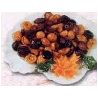 “栗子冬菇”集“干果之王”的粟子和“山珍”佳品冬菇于一饌。栗子果實(shí)粉糯,冬菇肉質(zhì)嫩滑,一菜兩味,配以綠色蔬菜,色彩分明,清爽美觀,是1956年浙江省認(rèn)定的36種杭州名菜之一。