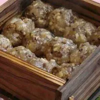 葛粉圓子做法比較考究,先在大鐵鍋里,將葛粉反復(fù)翻炒,讓其干透成細(xì)粉沒有結(jié)塊,再將豬肉(肥精適宜)、豆干(五香干最佳)、香菇、冬筍、蝦米等配料切成細(xì)丁,和細(xì)鹽、味精等作料一起,倒進(jìn)葛粉混合均勻,然后加入適量開水,攪拌至形成稠糊狀,再輕捏成一個(gè)個(gè)圓子,入蒸籠大火蒸至熟透,即可食用。其味多樣,糯香鮮滑,柔韌適口。也有的還要下鍋,添加蔥蒜等作料,用豬油再炒一下,更加油潤可口。