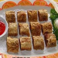 “石碼五香”的主要原料是:豬瘦肉、淀粉、洋蔥、精鹽、味精、砂糖、五香粉等。具體做法是:先把豬瘦肉切成小塊,加上適量淀粉、蔥花、精鹽、味精、砂糖、五香粉等,用適量的水調(diào)研成餡,以豆腐衣為外皮,裹成直徑約2至3厘米的長(zhǎng)條狀的“五香生坯”。食用時(shí),先在油鍋中放入適量油,中火至油五成熱后,放入“五香生坯”炸3—5分鐘,待五香條成金黃色浮上后,即可取出,切成若干小段,配上蕃茄汁或辣椒醬、酸蘿卜片等,趁熱食之,外酥內(nèi)嫩、醇香可口、回味無(wú)窮。