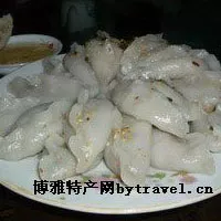 客家人多居住山區(qū),芋子是主要雜糧。所以,不斷變換口味,芋子包、芋子餃等食品便應(yīng)運(yùn)而生。它是連城的名牌風(fēng)味小吃。芋子餃皮呈白玉色,形如半月,食之皮嫩餡香,潤(rùn)滑適口,是城鄉(xiāng)群眾逢年過(guò)節(jié)必制的傳統(tǒng)名食,在連城已有數(shù)百年歷史。因芋餃上席后須趁熱食用,放涼后則香味流散,故有別名“趕燒”(趁熱之意)。芋子餃的制作是將煮熟的芋子去皮搗爛,和以地瓜粉反復(fù)搓揉,搟成圓形薄皮,將瘦肉、香菇、蝦米、大蔥等配料剁碎炒至半熟,擠去湯汁做成餡心,以皮裹餡捏成半月形狀,置蒸籠上蒸熟后裝盤(pán),淋上麻油、豬油,撒上芝麻,趁熱食用,有鮮、香、嫩的特點(diǎn),來(lái)連城的游客在街頭小吃攤上即能品嘗這種別具風(fēng)味的小吃。