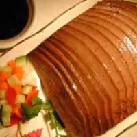武平豬膽干(最早應(yīng)寫成豬膽肝,由于多數(shù)人誤讀所以變成豬膽干)已有100多年歷史。它的制作要經(jīng)過洗料、配料、腌制、晾曬、壓扁、整形、檢驗七道工序。先將豬的肝和膽一起醬浸,加上適量白酒、五香等配料進(jìn)行調(diào)味,然后再用溫炭火烤熟。這樣制成的豬膽干色澤紫褐,香而微甜,且有生津健胃、清涼解毒的功能,深受海外僑胞歡迎。
