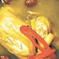 產(chǎn)地:中國江西。歷史:武山雞,又名烏骨雞,是江西著名特產(chǎn)?!侗静菥V目》載:“烏骨雞,有白毛烏骨雞者、班毛烏骨者,有骨肉俱烏者,肉白骨烏者;但觀雞舌黑者,則肉骨俱烏,入藥更良。”主治補(bǔ)虛勞贏弱。據(jù)傳,清代江西官員涂文軒進(jìn)京,常帶武山雞進(jìn)貢,皇帝品嘗后亦大加贊賞,乾隆皇帝時(shí)被列為“貢雞”。1915年巴拿馬國際博覽會上也受到好評。如今,仍然是全國名雞,清燉武山雞也是全國名菜之一。特點(diǎn):用武山雞燉制而成。成菜湯清味鮮,雞肉酥爛入味,有較強(qiáng)的滋補(bǔ)功效。 工藝:將武山雞宰殺,治凈,將背脊剖開,入沸水鍋略焯取出,除去血沫,洗凈。將雞放入砂鍋內(nèi),腹部朝上,加姜、紹酒、精鹽、清水,用大火燒沸后,轉(zhuǎn)用小火燉至雞肉酥爛、湯濃即成。( 新余)