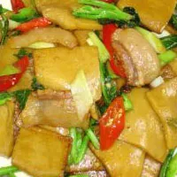 黃元米果炒臘肉。春節(jié)前加工制作,是贛縣客家傳統(tǒng)風(fēng)味小食品,相傳明代曾被列為地方土貢。原用大禾米加工而成,黃氣香質(zhì)軟,“黃元米果”,為特色食品。60年代后多用粳米精制,工序繁瑣?,F(xiàn)各地均改 為機(jī)器制作,每年臘月均有黃元米果上市。制作黃元米果要先用黃元柴灰加開水過濾成灰 水,冷卻后浸米一夜,次日用甑蒸熟成飯,再將飯拌灰水,攤開晾干后又蒸熟置于大石臼內(nèi),用硬雜木棍搗爛成團(tuán),起碓后,用手揉搓均勻,切塊做成各種形狀的米果。由于做工繁瑣,往往要親鄰朋友相助才會(huì)動(dòng)工興做。機(jī)制黃元米果盛行后,民間仍有少數(shù)家庭在冬季手制黃元米果。做好的黃元米果色黃味鮮,通常用灰水浸沒,藏于缸中,可留至第三年夏天。有的切碎曬干,再用沙炒或袖炸,做成各種類型的果品。具有柔軟細(xì)嫩、熏香味鮮、爽口久藏的特點(diǎn)