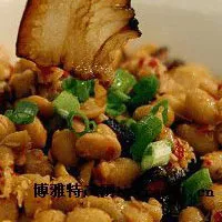 原料:上白面粉750克、豬五花肉250克、黃豆250克、芝麻仁25克、精鹽25克、菜籽油100克 一、將黃豆洗凈、曬干、炒熟,磨成粗粉。豬五花肉切成黃豆大的丁,放入豆粉中,加精鹽拌勻成餡。 二、取面粉(500克)加清水200克拌勻,揉成水面團(tuán)。將余下的面粉(250克)加菜籽油拌勻,擦成油酥面團(tuán)。各分成10個(gè)面劑。取水面劑一個(gè),放上油面劑,按扁,包入餡心,搟成圓餅形,上面灑點(diǎn)水,撒上芝麻仁,輕輕按一下,使其粘牢,即成馃生坯。以此法把面劑全制完。 三、平鍋置木炭小火上燒熱,將馃坯放入,每個(gè)馃中間部位壓一塊石塊(直徑10厘米的圓磚),邊烤邊按動(dòng)磚塊,促其成熟,并使黃豆粉和五花肉中的油分滲透均勻,至熟透取出即成。